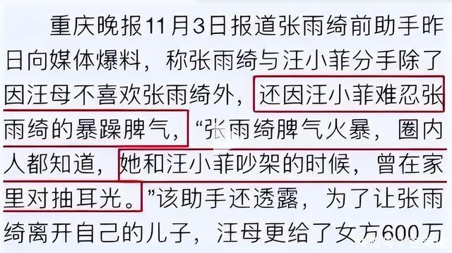 之后还有一位自称张雨绮前助力的人爆料称她脾气暴躁,男方无法忍受她的脾气。 并且男方母亲也对她很不满意,据说还曾拿出600万的分手费。 但张雨绮也不是一个缺男人的主,很快她就开始了下一段恋情。